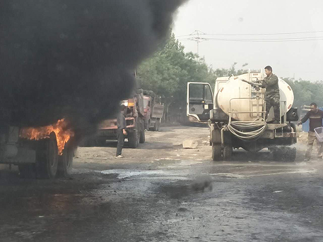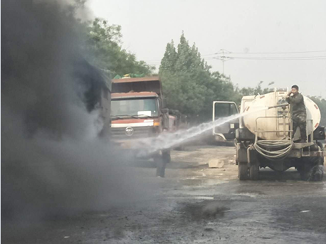 現(xiàn)場濃煙滾滾,貨車輪胎正在燃燒,整個底盤也暴露在大火下,火勢正在蔓延。時間就是金錢,張慎明立即開展救援,開啟灑水車后方高壓水槍進行滅火,火勢得到一定控制。但貨車內(nèi)胎仍在燃燒,他立即與司機一同接上水管,將水管直接深入輪胎中,將火撲滅。經(jīng)過多方努力,大火最終撲滅,初步計算挽回經(jīng)濟損失10萬元以上。貨車司機握住張慎明的手表達了深深的感謝,現(xiàn)場人員也紛紛為他點贊。張慎明說:“你們不用感謝我,還是感謝重山集團吧!”說完便離開了現(xiàn)場....