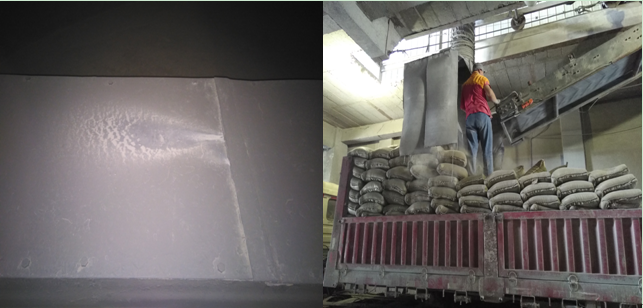 3#4#包機下導(dǎo)倉刮板機仍有漏料;袋裝裝車處技改效果不明顯