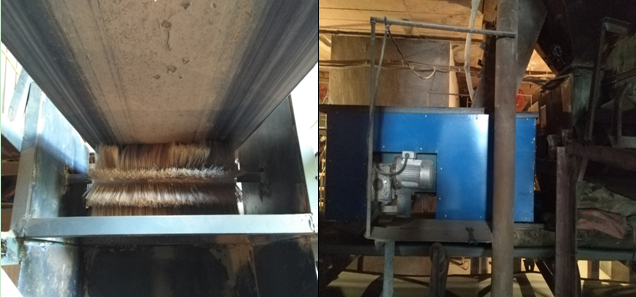 砂巖皮帶技改安裝回料毛刷 ;旋窯車間石粉倉下正在安裝皮帶防塵罩