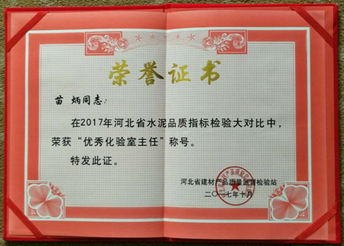 本次大會重點對“河北省水泥品質(zhì)指標檢驗大對比”活動的獲獎企業(yè)進行了表彰獎勵,黃驊三陽公司以優(yōu)異的成績榮獲水泥檢驗“全優(yōu)單位”榮譽稱號,苗炳榮獲“優(yōu)秀化驗室主任”榮譽稱號。