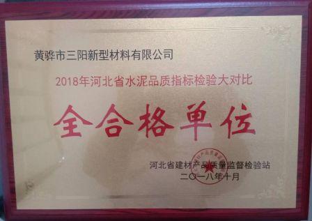 黃驊三陽(yáng)喜獲得水泥品質(zhì)指標(biāo)檢驗(yàn)大對(duì)比全合格單位稱(chēng)號(hào)
