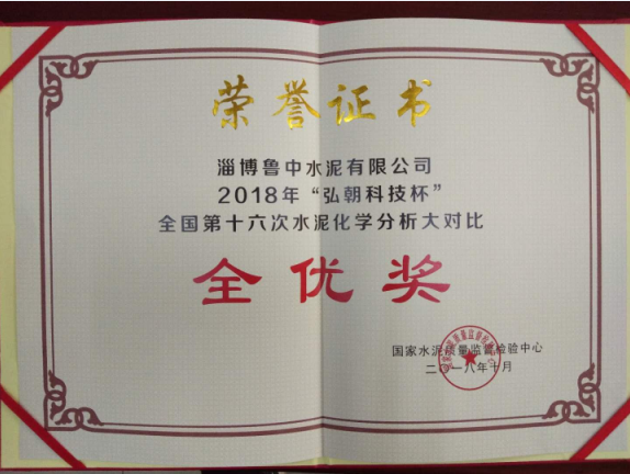 近日,魯中水泥榮獲由國(guó)家水泥質(zhì)量監(jiān)督檢驗(yàn)中心頒發(fā)的2018年“弘朝科技杯”全國(guó)第十六次水泥化學(xué)分析大對(duì)比全優(yōu)獎(jiǎng)。