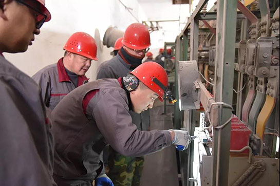 動(dòng)力車間電工為供電盤做著“體檢”