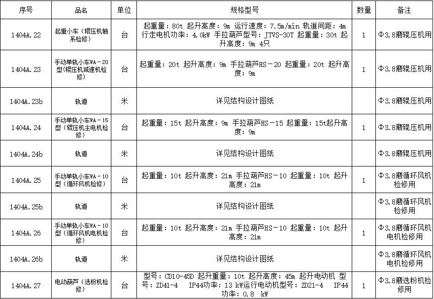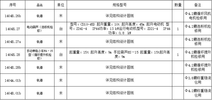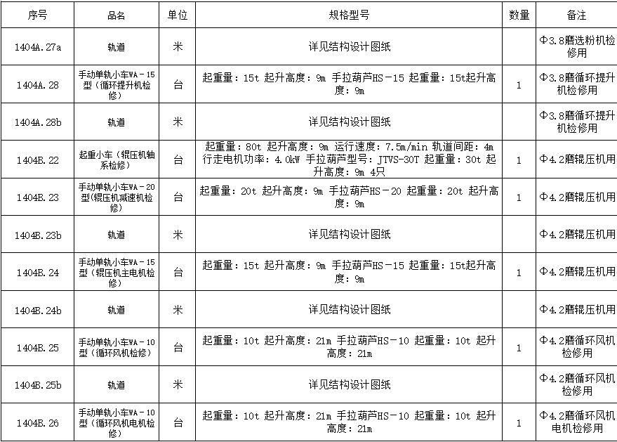 根據(jù)公司《采購招標(biāo)管理制度》,淄博魯中水泥有限公司定于3月21日—28日對φ3.8m、φ4.2m水泥磨輥壓機(jī)配套起重設(shè)備進(jìn)行公開招標(biāo),具體項(xiàng)目如下: