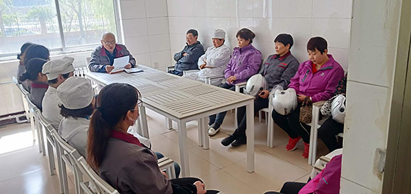 王宏和王士峰針對食堂、宿舍和浴室的環(huán)境改造提升以及安保巡邏、修剪綠化做了具體的安排。