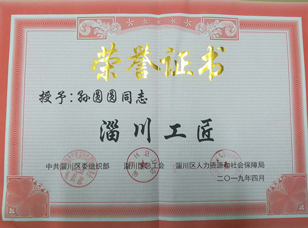 祝賀孫圓圓同志榮獲“淄川工匠”榮譽(yù)稱號