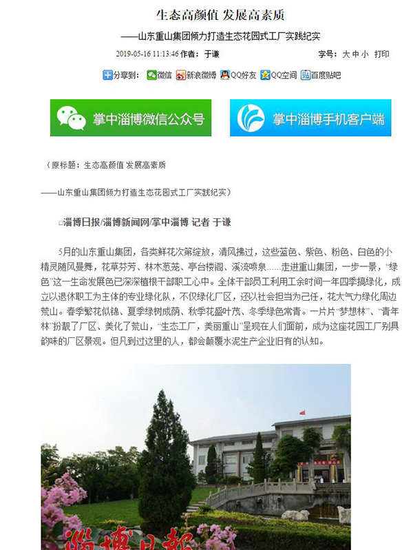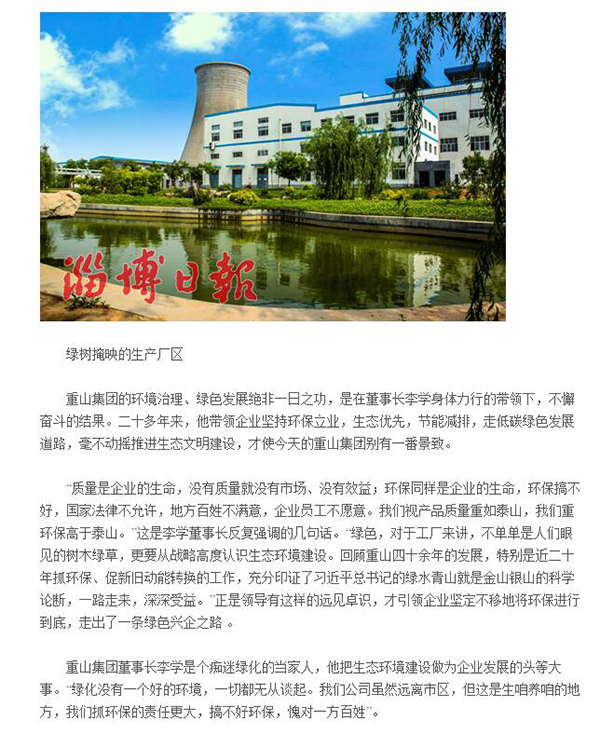 生態(tài)高顏值 發(fā)展高素質(zhì) —淄博新聞媒體刊發(fā)重山集團(tuán)打造生態(tài)花園式工廠實(shí)踐紀(jì)實(shí)