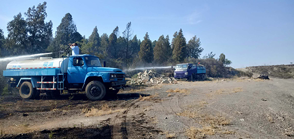 5月29日下午,供料車間員工在工作中發(fā)現(xiàn)南韓村米山發(fā)生山火,迅速聯(lián)系集團(tuán)總務(wù)處主任王宏和羅村鎮(zhèn)森林消防隊(duì),接到火情通知后,王宏迅速組織帶領(lǐng)保衛(wèi)隊(duì)員和灑水車與森林消防隊(duì)積極配合,展開撲救工作,由于失火點(diǎn)多,又產(chǎn)生復(fù)燃等狀況,給撲救工作帶來較大困難。經(jīng)過6個(gè)小時(shí)的奮力撲救,終于在夜間九點(diǎn)成功撲滅了各個(gè)失火點(diǎn)和復(fù)燃點(diǎn)。重山集團(tuán)的社會(huì)責(zé)任再次在這次山火撲救中得到了充分體現(xiàn),用實(shí)際行動(dòng)踐行了致良知。