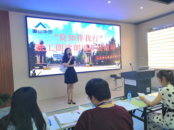 為提高各位參賽選手的能力,保證“良知伴我行”職工朗讀朗誦比賽取得良好的效果。6月24日,集團(tuán)辦公室邀請(qǐng)區(qū)電視臺(tái)文體部主任李麗、主持人王寧、攝像記者車(chē)俊艷、張志凌霄四位專(zhuān)業(yè)老師做賽前指導(dǎo)。四位老師針對(duì)每位參賽選手的表現(xiàn)和稿件內(nèi)容,從語(yǔ)調(diào)、節(jié)奏、走臺(tái)、故事講述、排比句等朗讀技巧進(jìn)行了現(xiàn)場(chǎng)示范。參賽選手經(jīng)過(guò)老師的專(zhuān)業(yè)指導(dǎo),掌握了更好的朗讀朗誦技巧,對(duì)正式比賽充滿了信心。