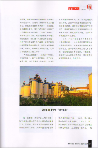 凝心聚力 創(chuàng)新圖強——《中國水泥》刊發(fā)黃驊三陽公司紀(jì)實