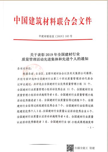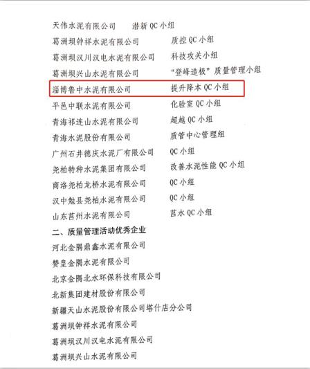 魯中水泥榮獲全國建材行業(yè)先進集體稱號