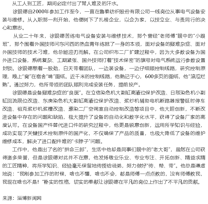 【淄博工匠】“淄博工匠”徐銀德——設(shè)備安裝工專治“卡脖子”