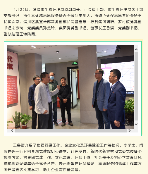 【頭條】淄博市綠色環(huán)保志愿者協(xié)會、淄川區(qū)委宣傳部到集團調研