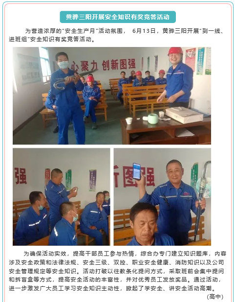 【安全生產(chǎn)月】黃驊三陽(yáng)開展安全知識(shí)有獎(jiǎng)競(jìng)答活動(dòng)、熱電廠組織安全培訓(xùn)