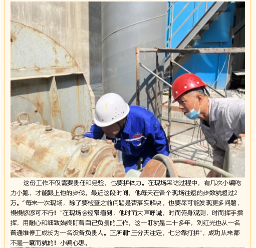 【重山人?重山事】始終奔波在生產(chǎn)一線的“老黃?!薄涺斨兴嗌a(chǎn)技術(shù)部設(shè)備總工劉紅光