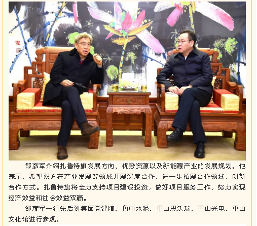 扎魯特旗委書記邵彥軍到重山集團(tuán)考察指導(dǎo)工作