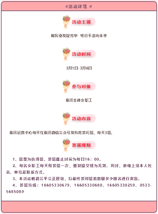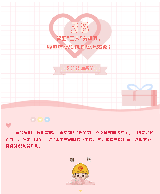 【活動(dòng)預(yù)告】喜迎“三八”女神節(jié),集團(tuán)有獎(jiǎng)問(wèn)答上線啦!連續(xù)6天!贏獎(jiǎng)品!漲知識(shí)!