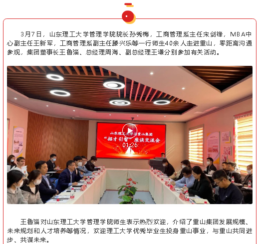 “招才引智”——山東理工大學(xué)管理學(xué)院走進(jìn)重山
