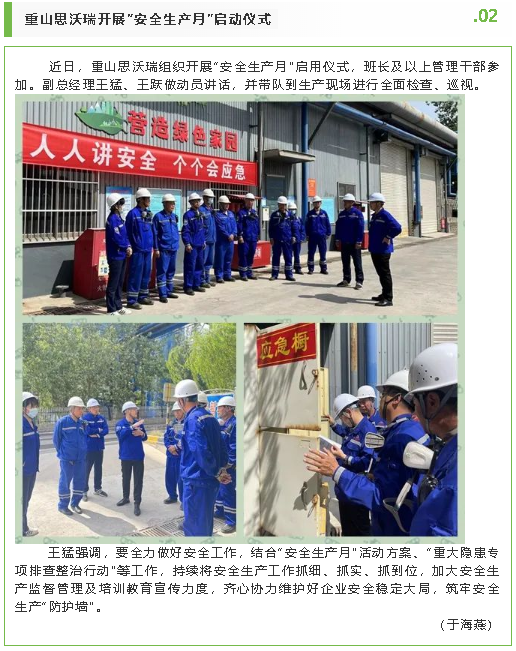 【安全生產(chǎn)月專欄】黃驊三陽(yáng)組織“總經(jīng)理帶頭講安全”活動(dòng)、重山思沃瑞開(kāi)展“安全生產(chǎn)月”啟動(dòng)儀式