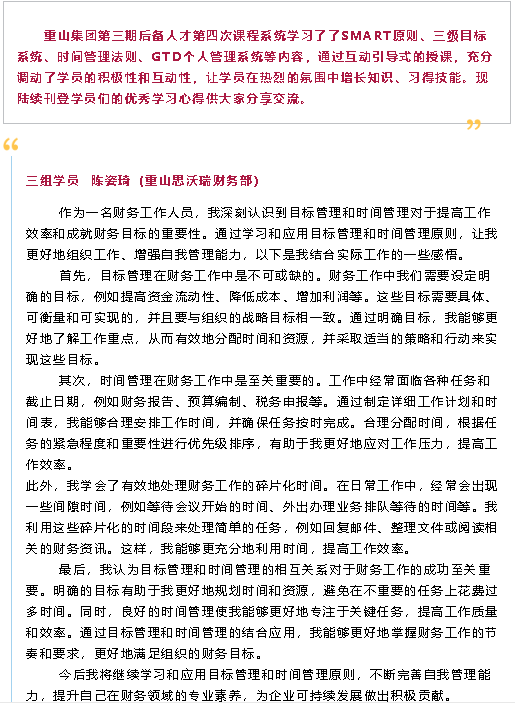 【心得分享】集團第三期后備人才培訓(xùn)項目優(yōu)秀學(xué)習(xí)心得分享(四)