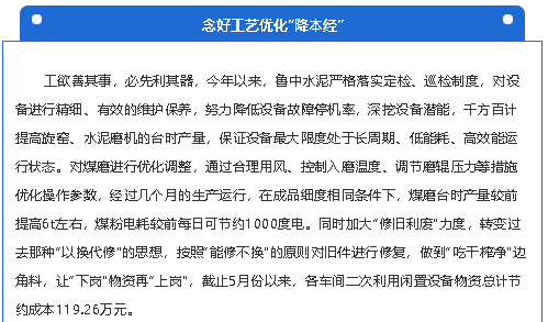 【節(jié)支降本】苦練內(nèi)功夯基礎(chǔ) 追求精細(xì)保效益——魯中水泥多點(diǎn)發(fā)力打出挖潛增效組合拳