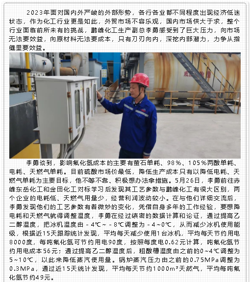 【節(jié)支降本】節(jié)支降本始于心 挖潛增效踐于行——鵬峰化工生產(chǎn)副總李勇