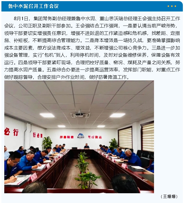 魯中水泥召開(kāi)各級(jí)各類(lèi)工作會(huì)議,深入推進(jìn)提質(zhì)增效