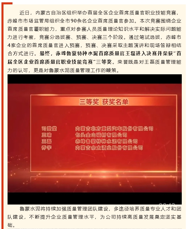 【榮譽(yù)】王磊榮獲首屆全區(qū)企業(yè)首席質(zhì)量官職業(yè)技能競賽三等獎