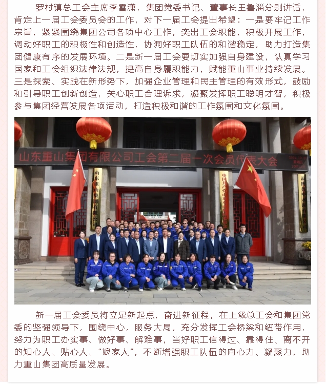 【頭條】工會換屆譜新篇,凝心聚力再起航——山東重山集團有限公司工會換屆圓滿完成