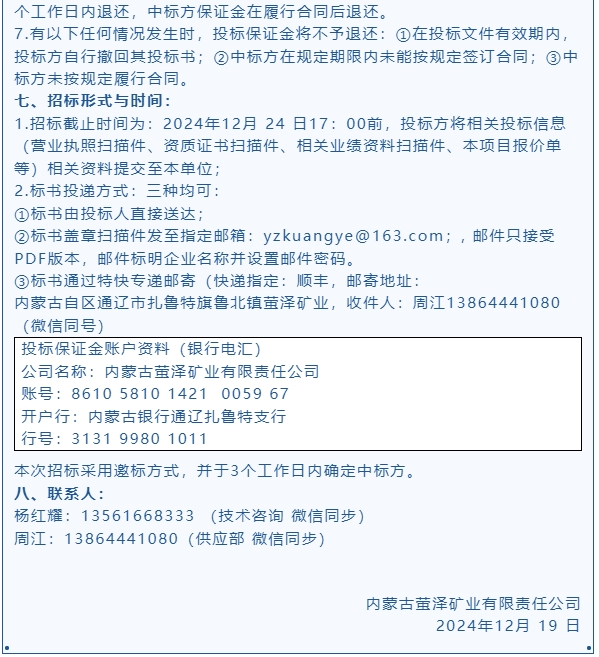 【招標(biāo)公告】螢澤礦業(yè)