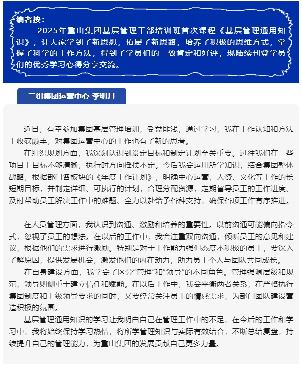 【心得分享】集團基層管理干部培訓心得分享(二)