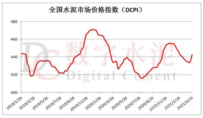 水泥市場綜述:本周(3月22日-3月26日)全國水泥市場價(jià)格呈現(xiàn)大范圍上漲趨勢,據(jù)數(shù)字水泥網(wǎng)價(jià)格指數(shù)(DCPI)顯示,P.O42.5散裝442.5元/噸,環(huán)比漲幅達(dá)到1.6%。價(jià)格上漲區(qū)域主要集中在華東、中南、西南和西北地區(qū),幅度10-65元/噸;同時(shí)價(jià)格也有出現(xiàn)回落的地區(qū),在河南鄭州、云南昆明和江西九江等局部市場,幅度10-30元/噸。