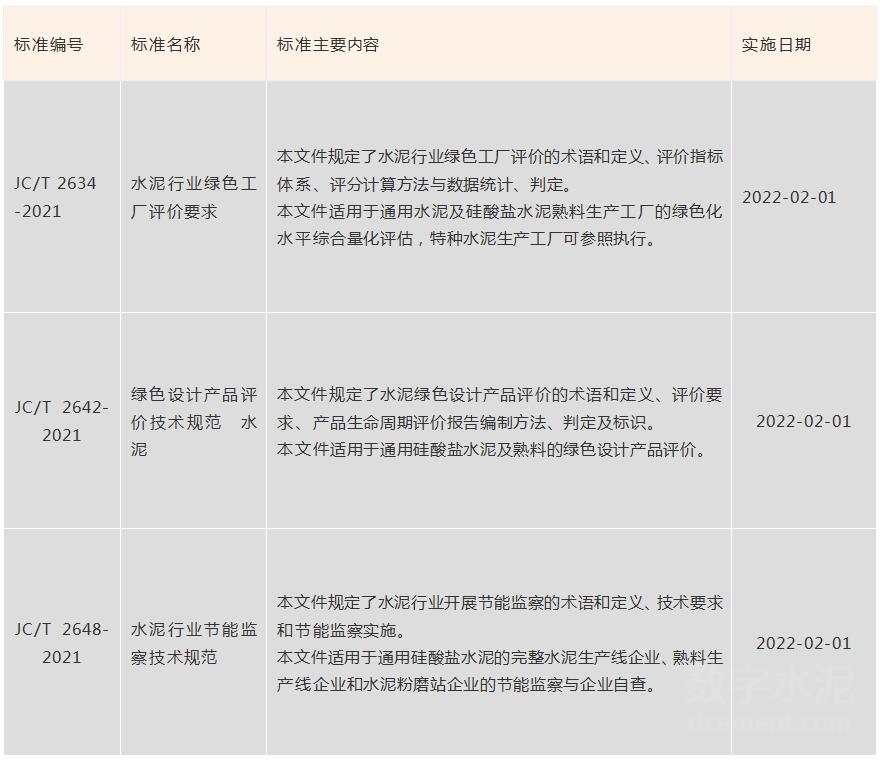 最新消息,從工信部網(wǎng)站獲悉,工業(yè)和信息化部批準(zhǔn)了250項(xiàng)行業(yè)標(biāo)準(zhǔn),其中包括建材行業(yè)標(biāo)準(zhǔn)15項(xiàng),涉及水泥等8個行業(yè)的綠色工廠評價要求以及水泥等5類產(chǎn)品的綠色設(shè)計標(biāo)準(zhǔn),相關(guān)標(biāo)準(zhǔn)將于2022年2月1日實(shí)施。文件相關(guān)內(nèi)容摘要如下: