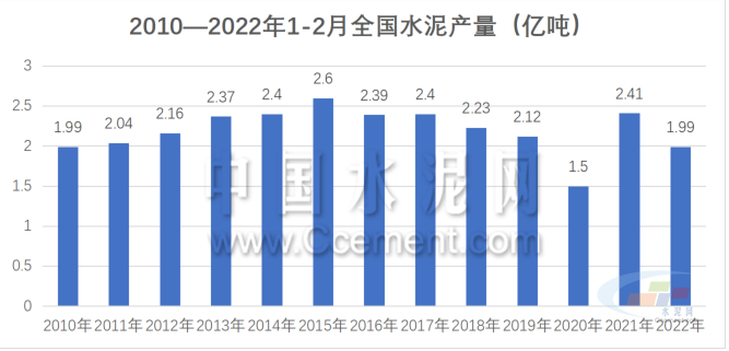 3月15日,國家統(tǒng)計局消息,1—2月全國水泥產(chǎn)量19933萬噸,同比減少17.8%。總產(chǎn)量跌回12年前,僅高于疫情影響嚴(yán)重的2020年,與2010年基本持平。