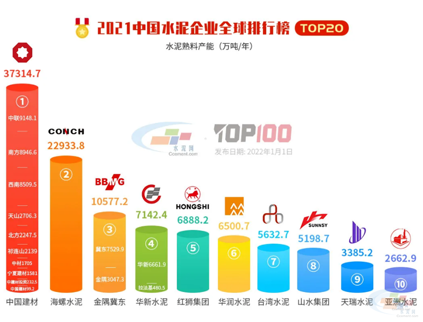 2022年1月1日,元旦之際,“2021中國(guó)水泥熟料產(chǎn)能百?gòu)?qiáng)榜”如期發(fā)布,這是中國(guó)水泥網(wǎng)連續(xù)第18年發(fā)布該榜單。在中國(guó)水泥企業(yè)全球產(chǎn)能排行中,紅獅集團(tuán)超過(guò)華潤(rùn)水泥,排名升至第五位。