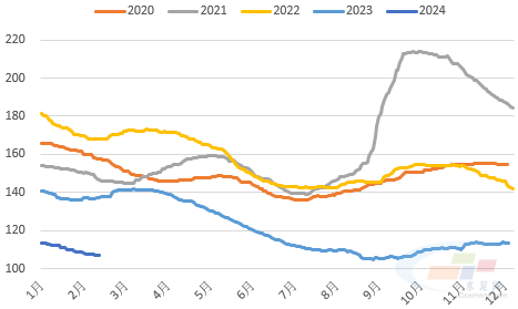 2022-2023年受房地產(chǎn)市場深度調(diào)整影響,市場競爭激烈,水泥價格震蕩下行,當前全國水泥價格指數(shù)報收106.82點,處于五年來相對低位水平,多數(shù)水泥企業(yè)虧損慘重,因此節(jié)后提漲水泥價格、向上修復利潤的意愿十分強烈。