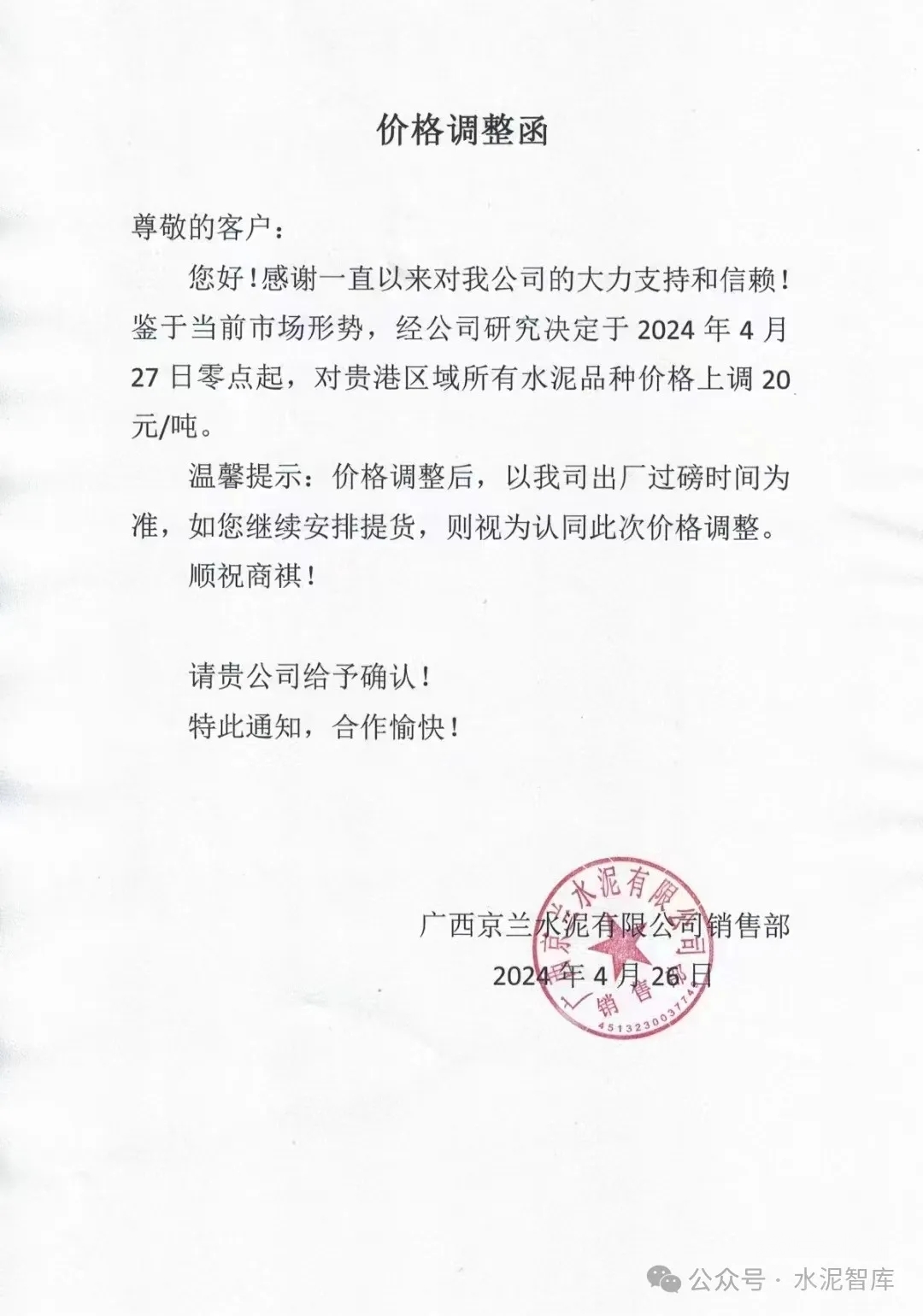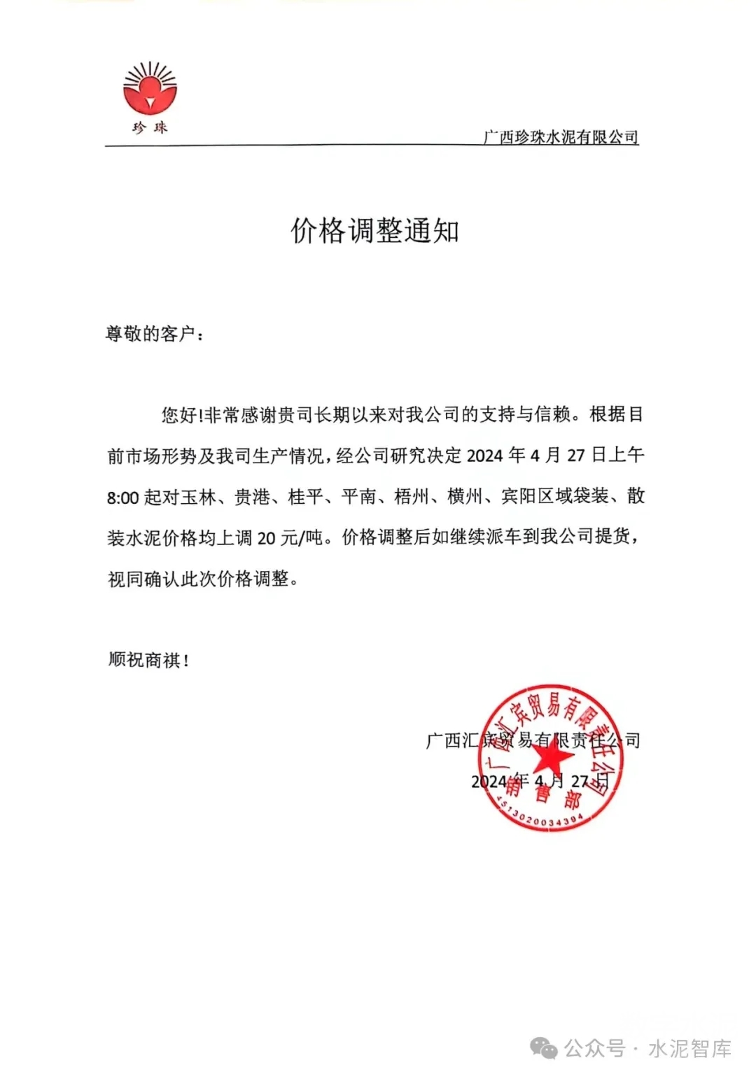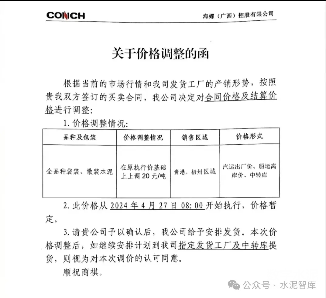 4月26日起,廣西各地級市水泥企業(yè)也陸續(xù)發(fā)布價(jià)格上漲通知,幅度20元/噸。競爭較為激烈地區(qū)P.O42.5散裝水泥價(jià)格有望從190-200元/噸上調(diào)至210-220元/噸。