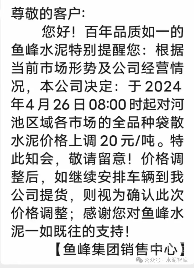 長江沿線地區(qū)水泥價(jià)格于4月中旬小幅恢復(fù)性上調(diào)后,4月24日,東北地區(qū)因虧損嚴(yán)重,企業(yè)經(jīng)營困難,發(fā)布大幅上漲消息,通知上調(diào)20-60元/噸。