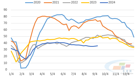 今年以來,受地產(chǎn)持續(xù)探底和基建資金不足等影響,水泥需求低迷態(tài)勢基本貫穿前三季度。中國水泥網(wǎng)水泥大數(shù)據(jù)顯示,截至當(dāng)前,水泥發(fā)運率在36%左右,需求恢復(fù)不足四成,遠(yuǎn)遜于同期。一方面,美聯(lián)儲降息,人民幣匯率升值,有利于減輕部分發(fā)行較多美元債的地產(chǎn)企業(yè)債務(wù)壓力,修復(fù)資產(chǎn)負(fù)債表;另一方面,貨幣政策空間打開后,市場利率下降,流動性增加,緩解部分基建項目資金壓力,短期需求有望轉(zhuǎn)暖。不同的是,前三輪降息周期中我國水泥需求處于上升期和高位平臺期,目前處于下行通道,長期來看需求下滑不可逆轉(zhuǎn)。