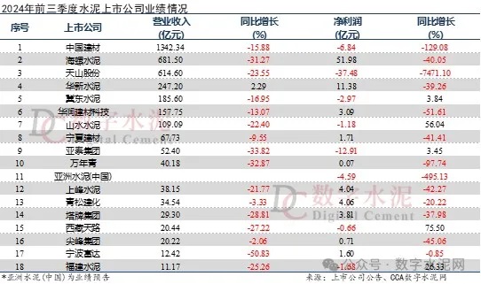 從水泥主業(yè)上市公司前三季度業(yè)績(jī)來(lái)看,多數(shù)公司收入和利潤(rùn)均同比大幅下滑。在行業(yè)整體下滑的背景下,8家水泥上市公司呈現(xiàn)虧損狀態(tài),有13家凈利同比下降。海螺水泥和華新水泥分別位居凈利潤(rùn)前兩位。盡管前三季度業(yè)績(jī)不佳,但后期水泥行業(yè)仍有望通過(guò)政策調(diào)整、市場(chǎng)需求改善等因素實(shí)現(xiàn)業(yè)績(jī)回升?。