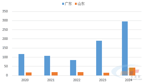 圖2:廣東、山東水泥及熟料出口量走勢(萬噸)