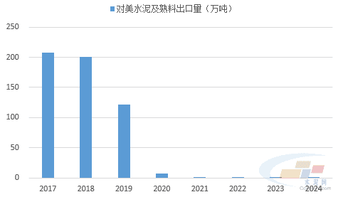 2018-2019年,美國是中國最主要的水泥業(yè)務(wù)貿(mào)易伙伴,中國出口到美國水泥及熟料量占比超過20%。2019年美國大幅提高中國商品關(guān)稅,中國對美水泥及熟料出口量下降至121.98萬噸,同比下降39.18%,2020年進(jìn)一步萎縮至6.67萬噸,2021-2024年延續(xù)下降態(tài)勢,年出口量不足萬噸。盡管當(dāng)前特朗普政府對中國極限施壓,提高中國輸美商品成本和價格,但在中國出口美國水泥產(chǎn)品占比極低情況下,這種影響已經(jīng)較為有限,整體較小。