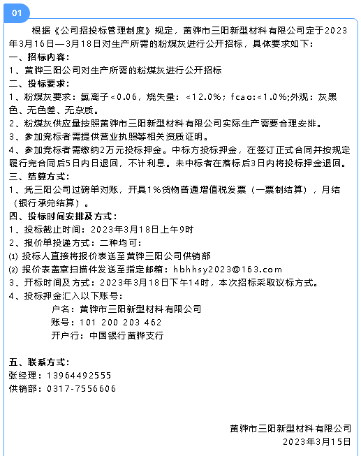 【招標(biāo)公告】黃驊三陽粉煤灰、爐渣、石子招標(biāo)