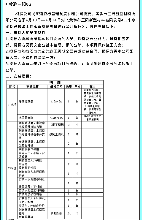 【招標(biāo)公告】 魯中水泥、黃驊三陽(yáng)