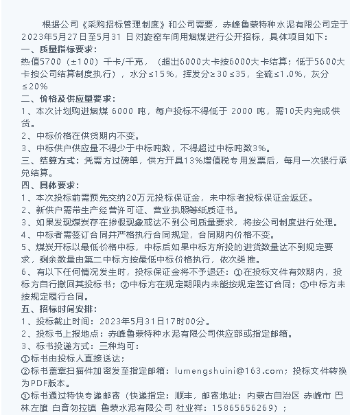 【招標(biāo)公告】魯蒙水泥