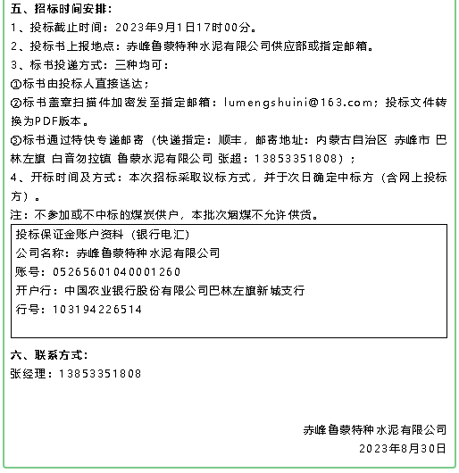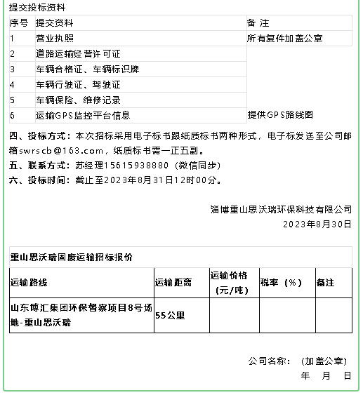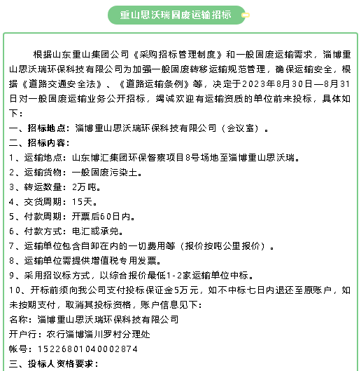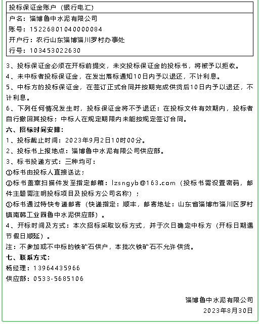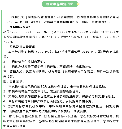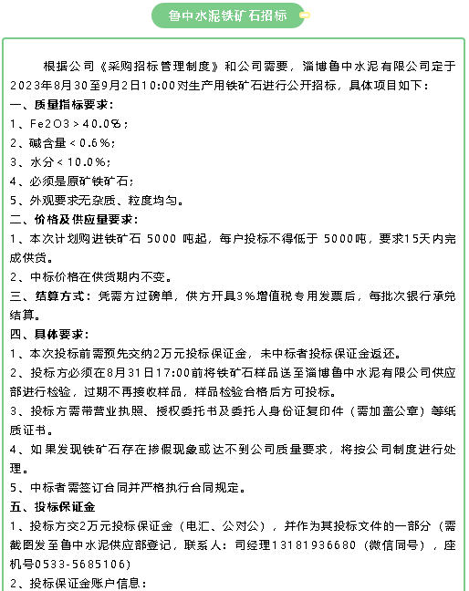 【招標公告】魯中水泥鐵礦石、魯蒙水泥煙煤、重山思沃瑞固廢運輸招標?