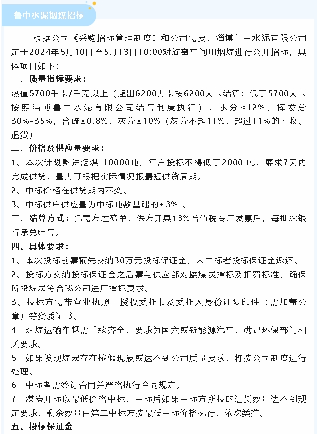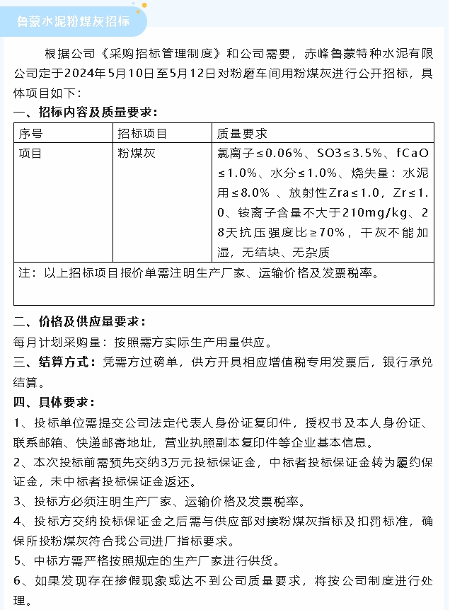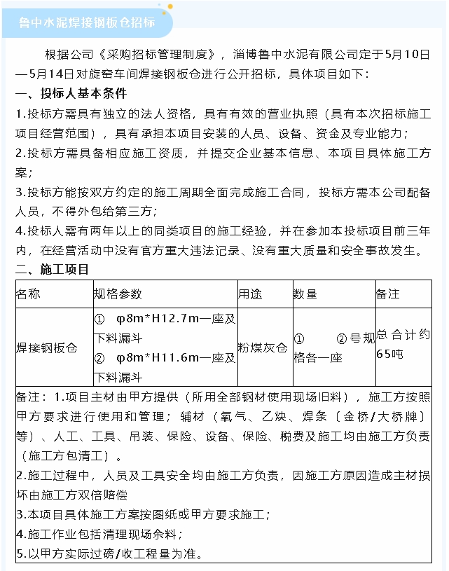 【招標(biāo)公告】魯蒙水泥粉煤灰、魯中水泥煙煤及焊接鋼板倉招標(biāo)