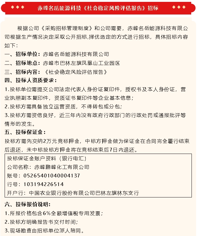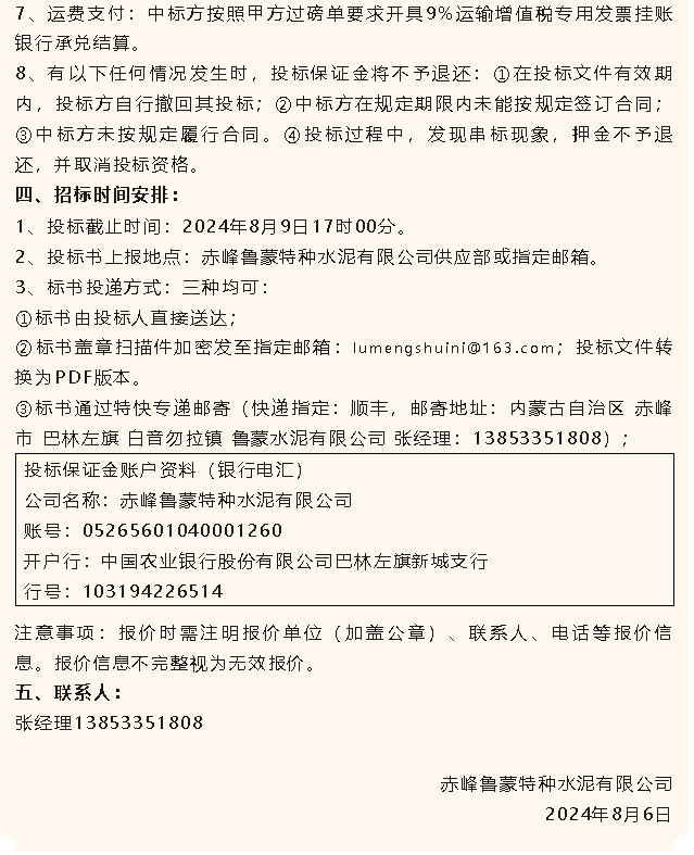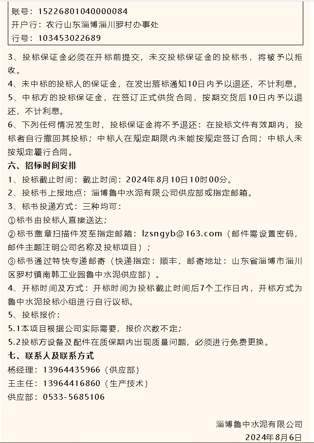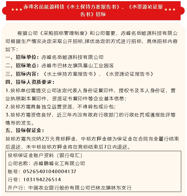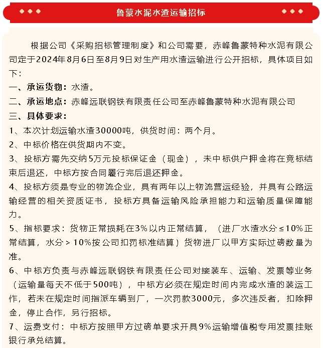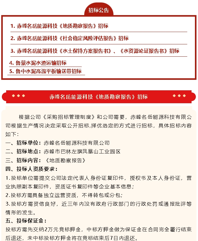【招標(biāo)公告】赤峰名岳能源科技、魯蒙水泥、魯中水泥
