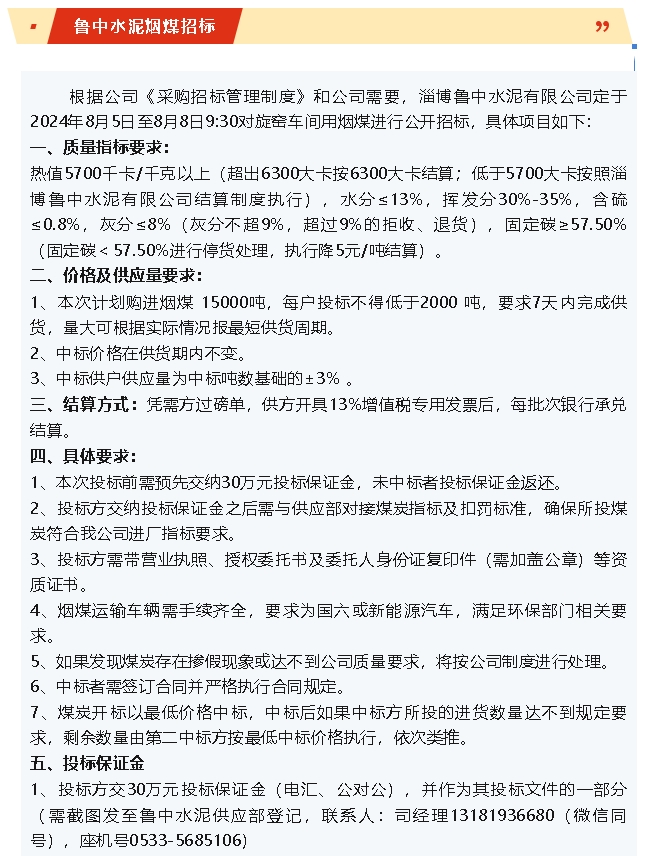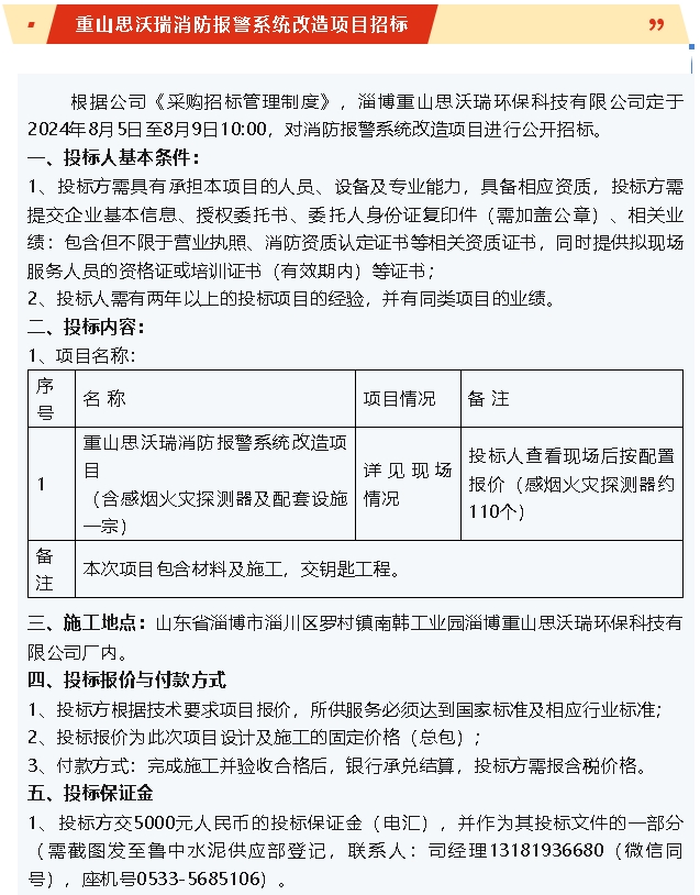 【招標(biāo)公告】魯中水泥煙煤、重山思沃瑞消防報(bào)警系統(tǒng)改造項(xiàng)目招標(biāo)