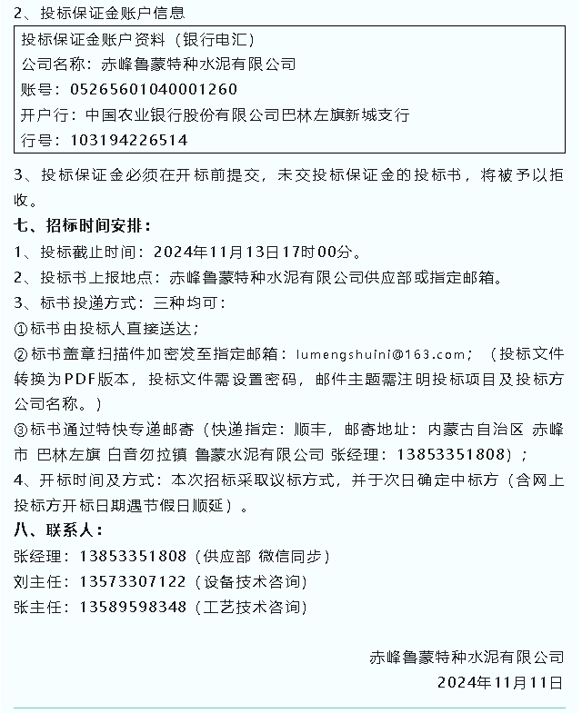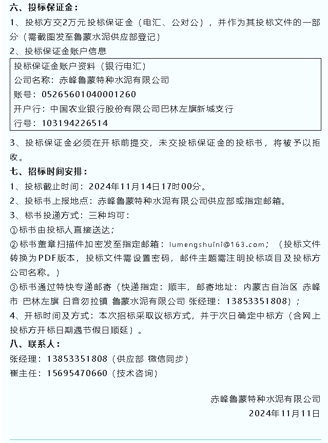 【招標(biāo)公告】魯蒙水泥、螢澤礦業(yè)